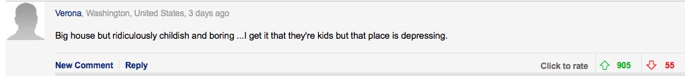 “房子很大,但是很幼稚,很无聊。我知道他们是孩子,但那个地方令人沮丧。”