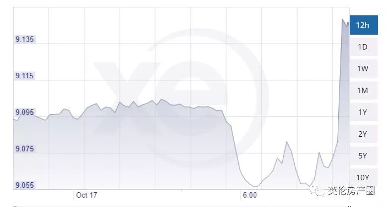 这一关于最终时间的表态被媒体解读为,脱欧协议有可能达成。在铺天盖地的消息下,英镑也开始了新一轮的疯涨,一度飙升至9.12。