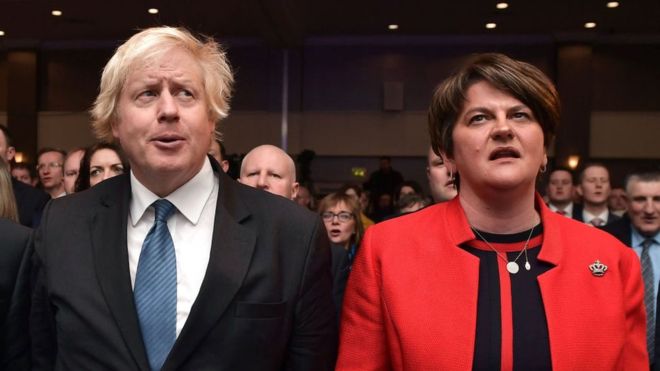 DUP坚持北爱尔兰必须和英国其他地区一起离开欧盟,所以一直反对特蕾莎·梅附有北爱边界兜底方案(Backstop Plan)的脱欧协议,而鲍里斯在北爱边界问题上却做出了某种“妥协”和“让步”,DUP内心不满也就可想而知了。