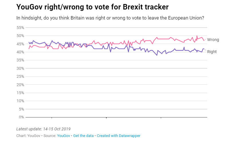 不过,值得一提的是根据YouGov最新民调,对于2016年投票支持脱欧这件事,居然有很多人反悔了。数据显示,有42%的选民认为英国脱欧没有错,但高达47%的选民认为英国脱欧是错的。