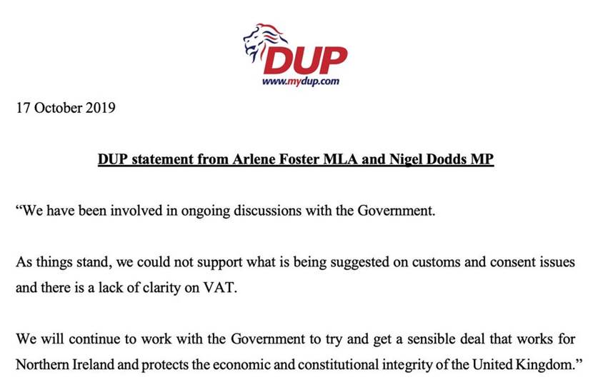 除了以工党为代表的部分反对派议员会“为了拒绝而拒绝”之外,曾经坚定支持鲍里斯的DUP也早已心生间隙。