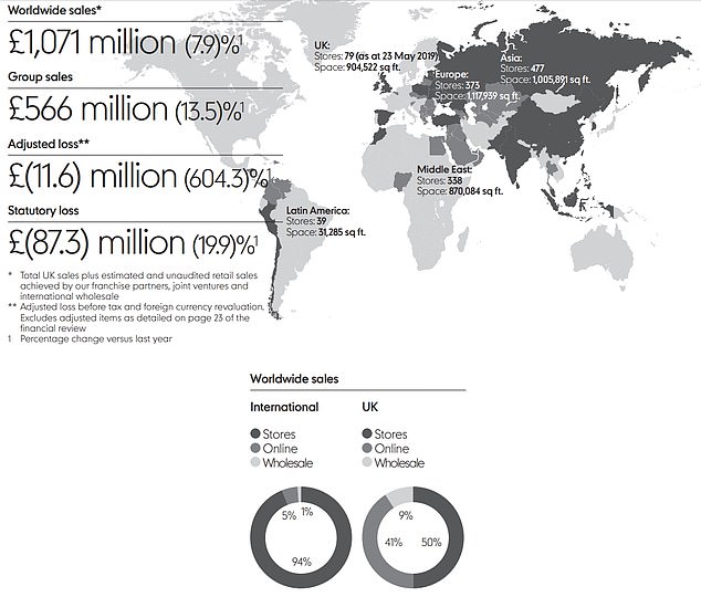 其实早在2017年开始,公司的销售额就出现下降。因为商业街门店的销售额不断下滑,公司的亏损日益严重。2018年5月,公司关闭了50家英国门店。同年7月,公司以每股19便士的价格筹集3250万英镑的资金,希望能减轻债务压力。4个多月后,公司不得不将门店进行出售和出租,勉强带来了1,450万英镑的收入。