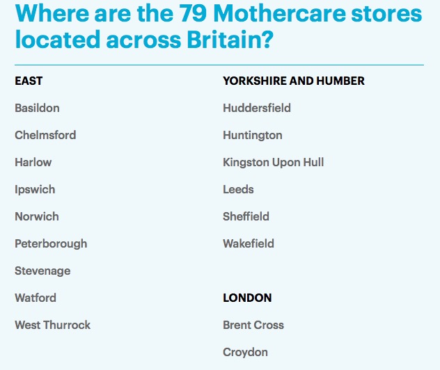 今年11月,Mothercare宣布关闭全部(79家)英国门店。