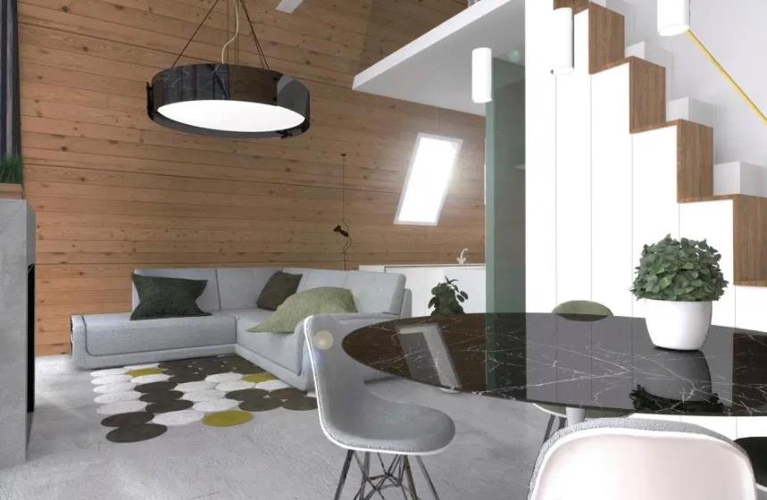 虽然这个公寓的外部看着不大,但“麻雀虽小,五脏俱全”,每个公寓都有超过两层的空间,包括客厅、卧室,厨房、餐厅和配套浴室。