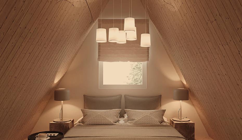 二楼的卧室虽然不大,但足够放一张双人床,带有弧度的墙面和精巧的设计让狭小的空间完全没有压迫感。