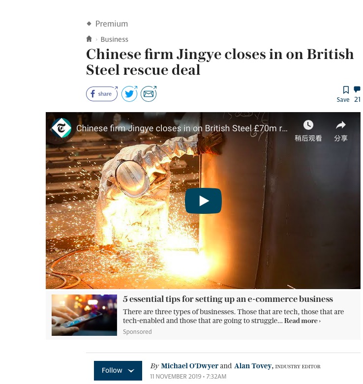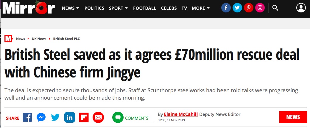 所以,早在一周之前,就有媒体看好来自中国的敬业集团能够拿下这份收购协议。而今天,中国敬业收购英国钢铁公司案终于获得了突破性的进展。