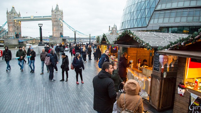 在London Bridge City集市上,你可以欣赏到圣诞演出,还能以标志性的伦敦塔桥为背景!