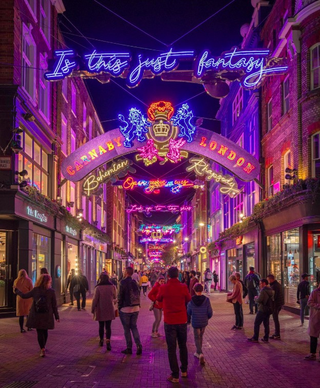 商业步行街卡纳比街邻近牛津街和摄政街。
