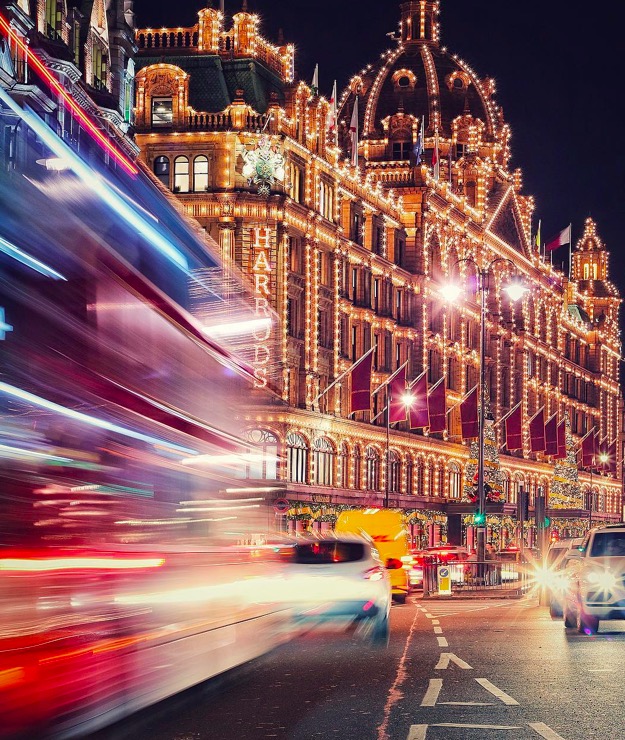 夜幕降临时,骑士桥的著名百货公司哈罗德百货公司(Harrods)将亮起了一万两千多个灯泡。