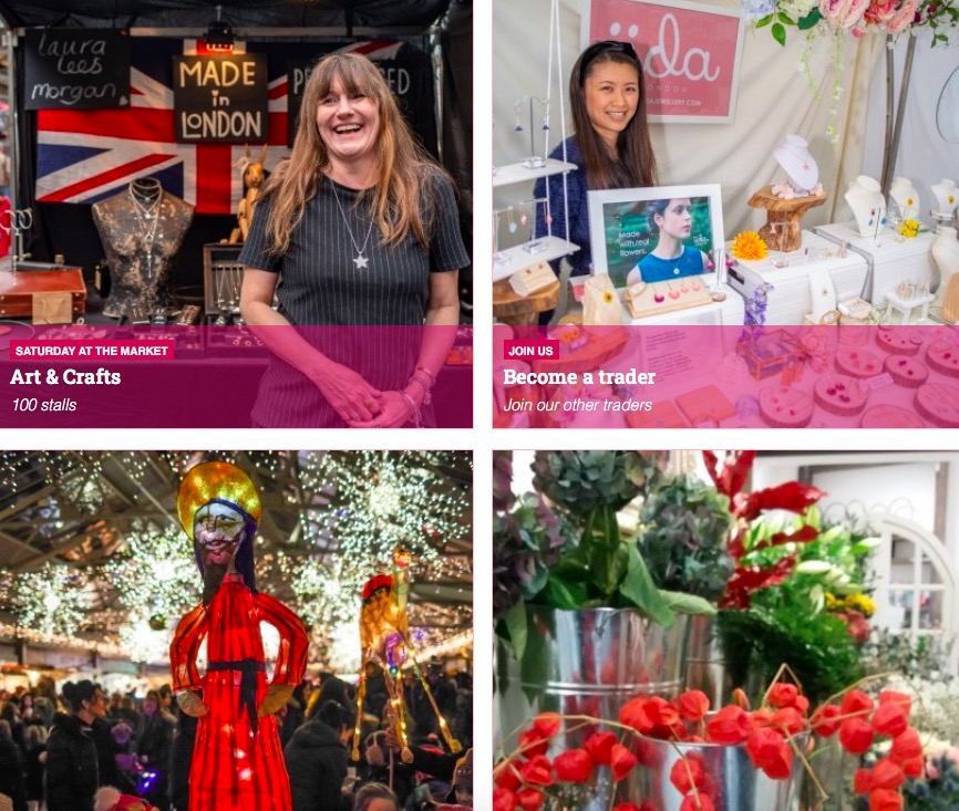 在Greenwich Market的集市上,有节日的装饰品,工艺品和各种小吃