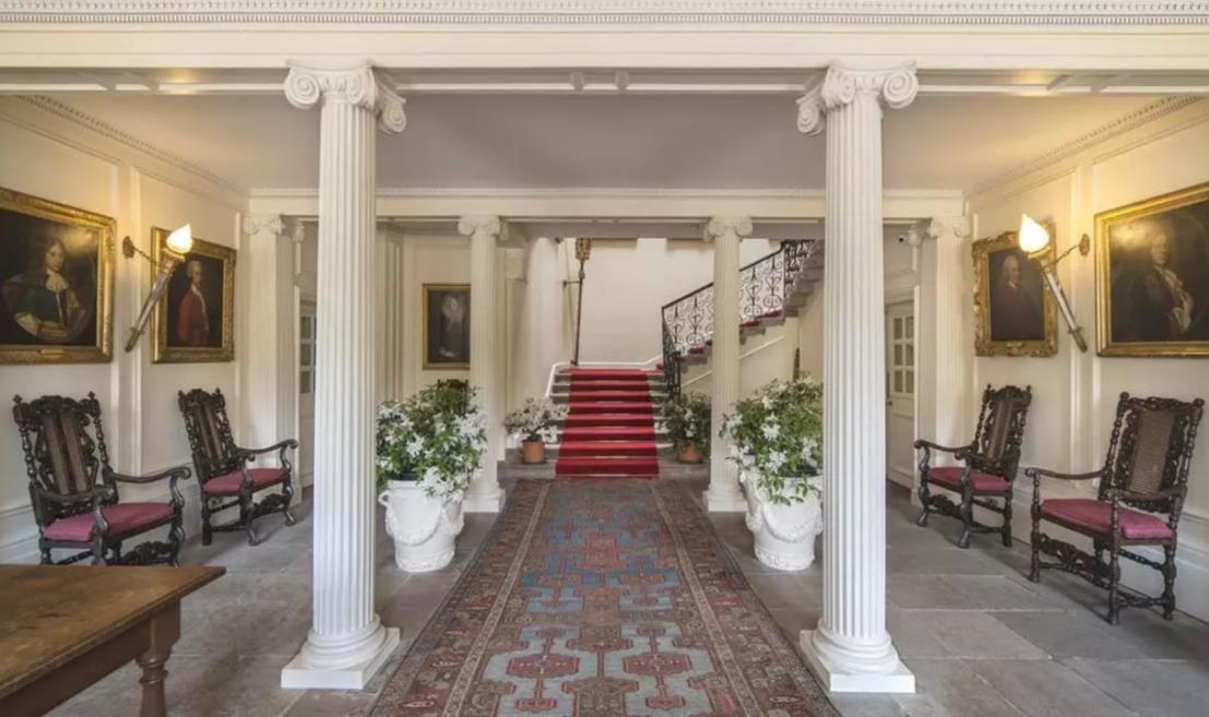 一进入城堡,你就会看到爱德华时期镶板墙壁和令人印象深刻的石灰柱。楼梯保留着原始的状态,仍然采用了1659年安装的铁艺栏杆。