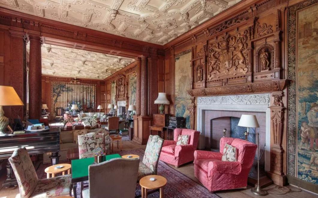 客厅是设计最好的房间之一,完全按照威廉·伯恩(William Burn)的作品风格建造的,大大的落地窗让屋内采光极佳,但毫无疑问,这间房子最大的亮点还是精美的天花板。