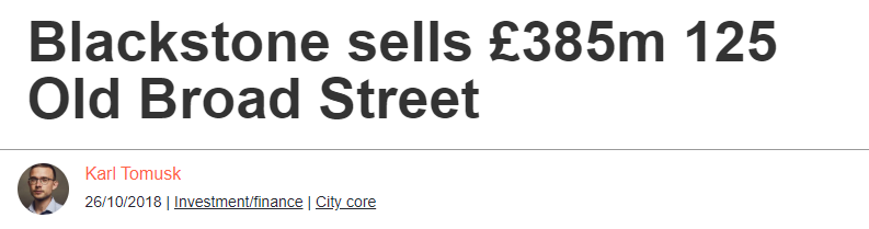 一直以来,黑石集团都对投资伦敦的办公楼地产情有独钟,因为这些办公楼具有低风险,收益稳定的特征。