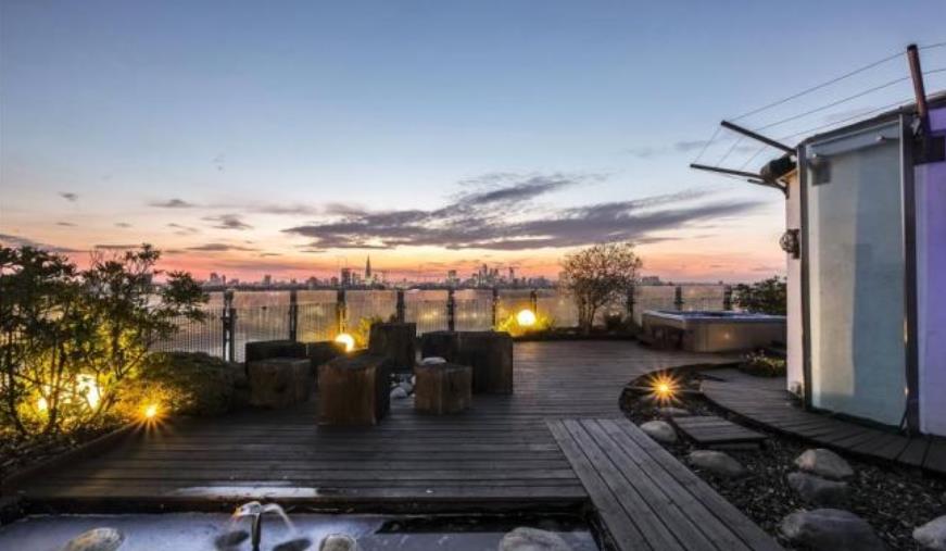 甚至还有一个热水浴缸,可以一边看风景一边泡澡,可以说十分享受了!