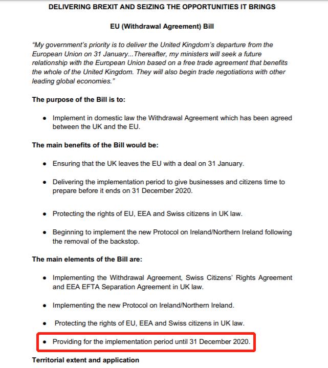 总之一句话,包含着拒绝延长过渡期附加条款的新版脱欧法案一出,也就意味着,英国兜兜转转一大圈,又是和欧盟来回扯皮,又是内斗引发大选。 最终选出了一个保守党多数的政府,满以为脱欧可以继续顺利进行下去的时候。 结果,鲍里斯新加入的过渡期不延长的条款,意味着明年年底如果谈不出贸易协议,那将面临在贸易上无协议脱欧的风险,这也是为何英镑会下跌的主要原因之一。