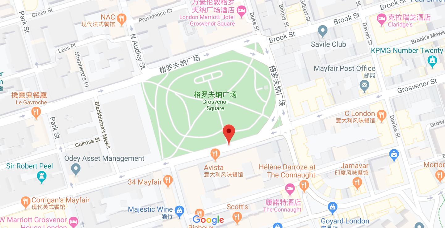 Grosvenor Square是伦敦的一个花园广场,位于奢华的梅菲尔区(Mayfair)中心地带,其悠久的历史可以追溯到1726年,这是威斯敏斯特公爵梅费尔产业的的核心,因此得名于其姓氏“格罗夫纳”。