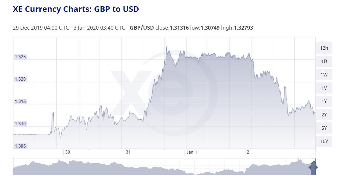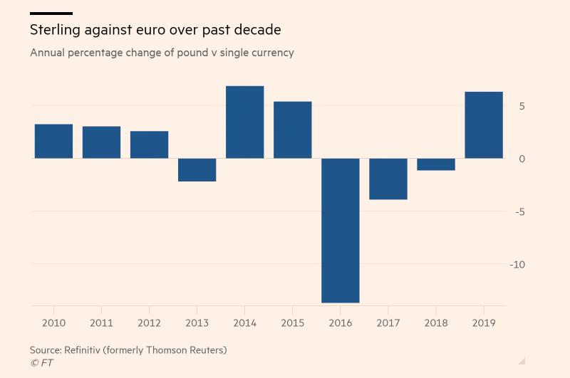 英镑兑美元汇率在2019年全年上涨1.7%,成为全球表现第二好的主要货币。英镑兑欧元汇率也累计上涨近6.3%。