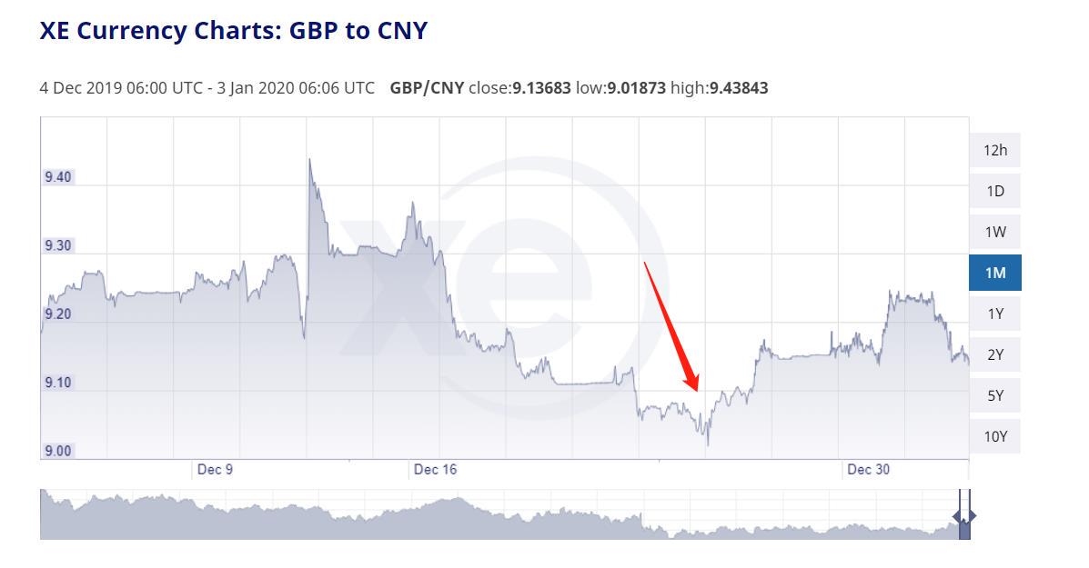 受此影响,还没有在高位保持多久的英镑汇率再次出现了下跌,甚至抹平了双12大选后带来的涨幅,兑人民币汇率甚至最低跌到过9.01。