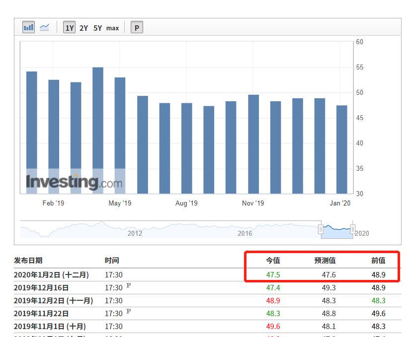 根据1月2日公布的英国采购经理人指数(Purchase Managers’Index ,PMI)来看,受全球经济大环境及需求减少的影响,2019年12月份,英国工厂出现了自2012年以来的最大降幅,PMI指标值为47.5,继续低于预期。