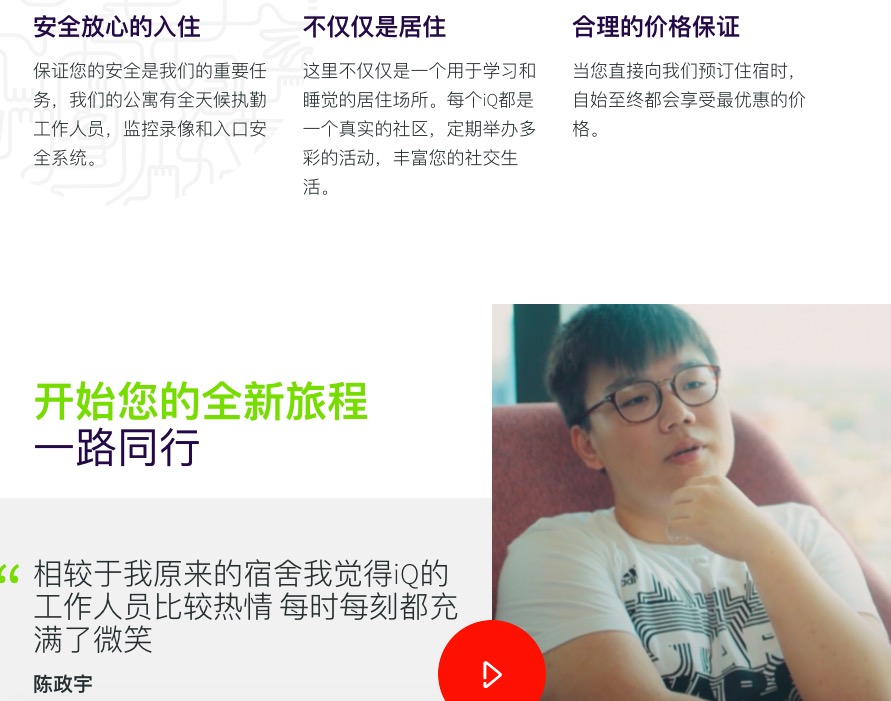 这也可以看出, iQ学生公寓非常重视中国市场。
