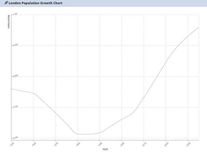 根据国际统计局的数据显示,2016年大伦敦地区的人口估计为878万人,根据联合国发布的《世界城市化展望》,2019年伦敦人口预计将达到918万,未来还将保持持续的净流入。
