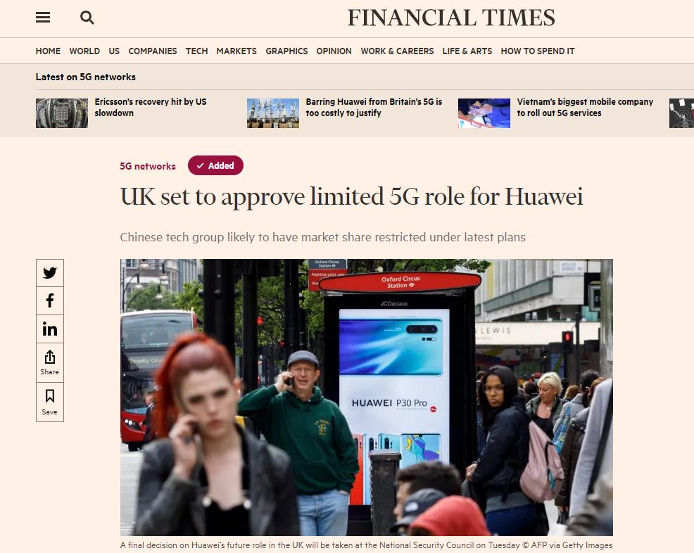 尽管自2018年以来, 围绕“5G”网络安全问题,有关华为的传闻从来没有停止过。而且贸易战下的中美关系,英国脱欧下的中英关系,都让这家企业面临着更加复杂的国际环境。
