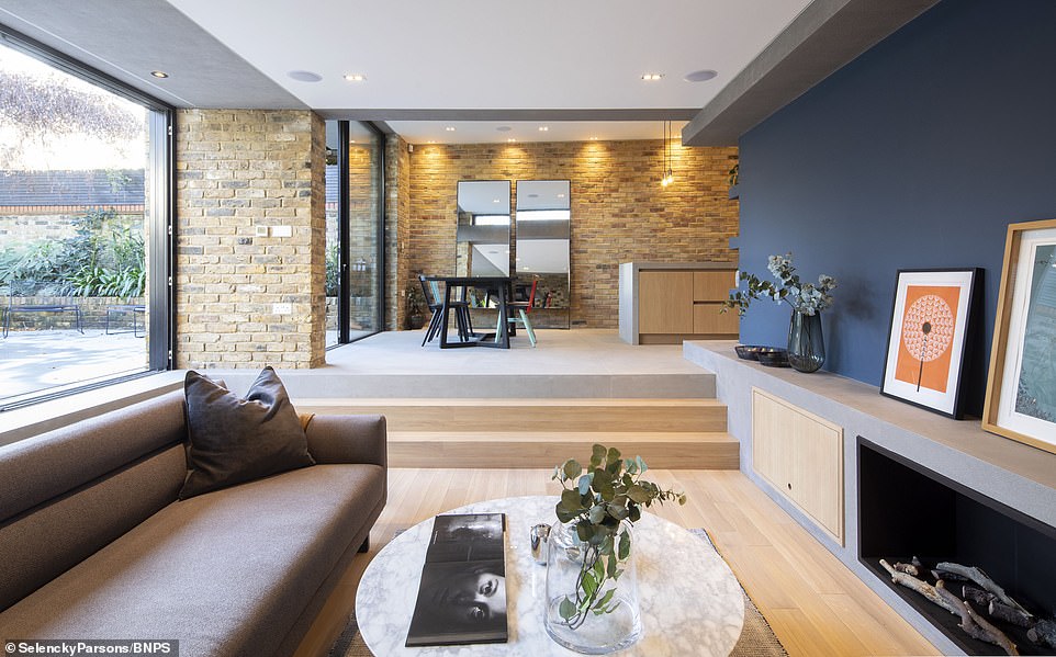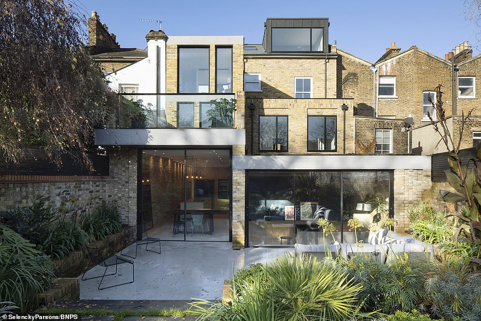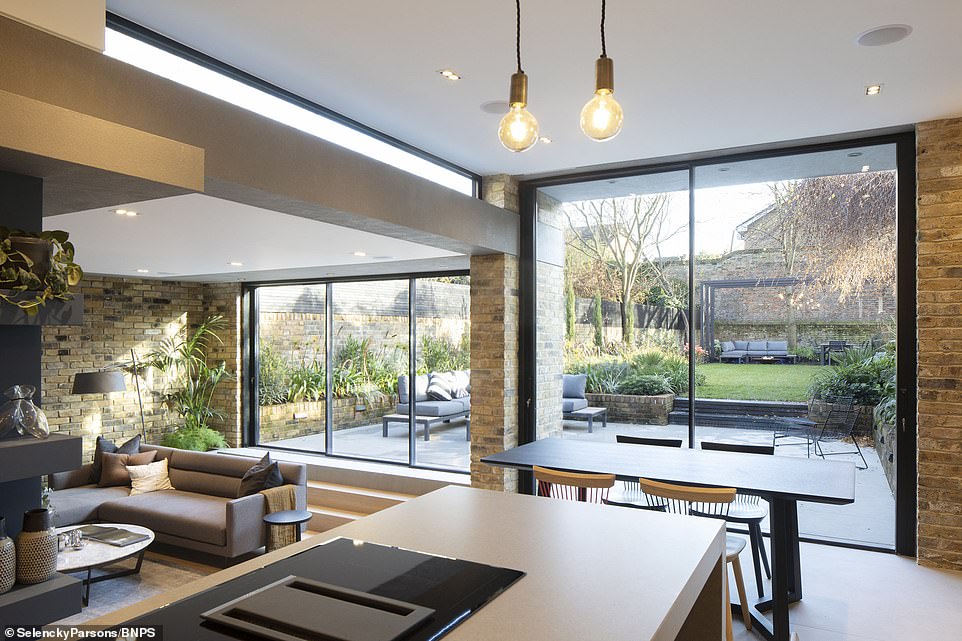 除了自己的这3.4米外,在后面花园的部分,设计师进行了一个L形的扩建,变成了一个舒适的客厅。