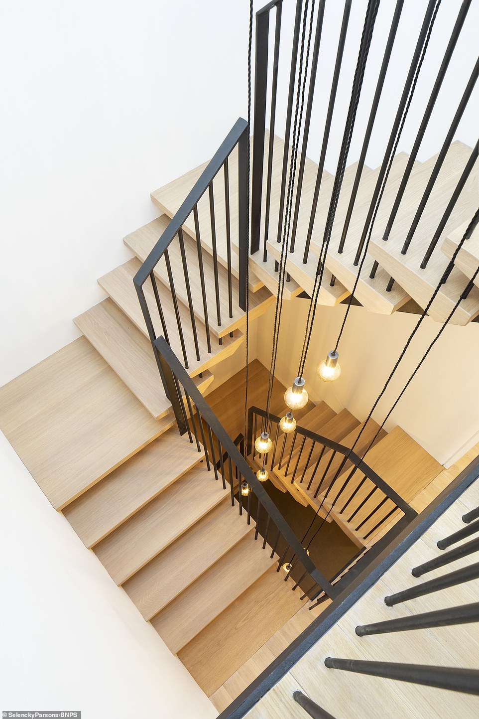 楼梯的设计非常巧妙,吊灯增加了照明。