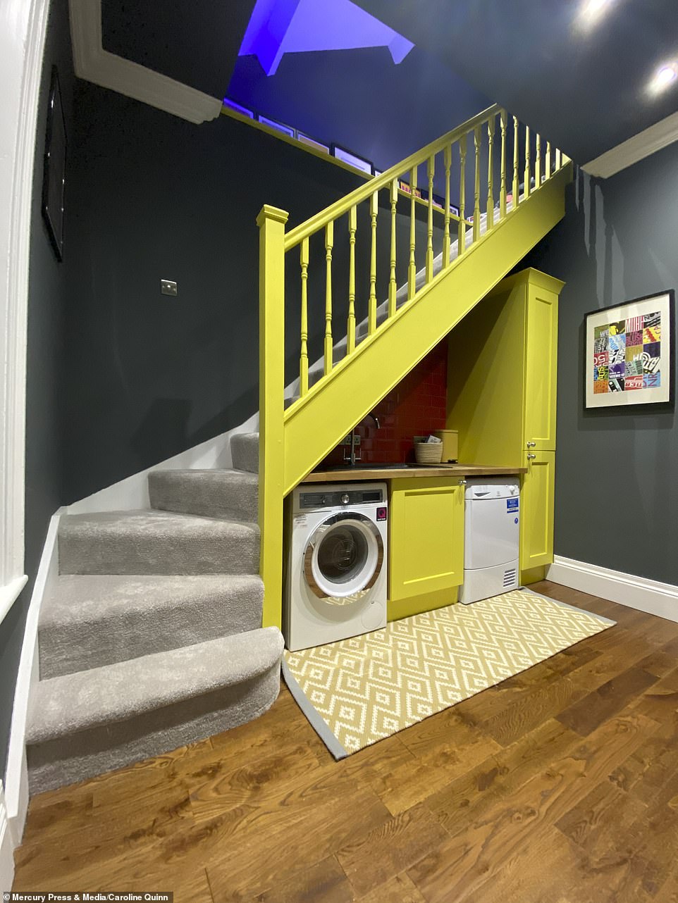角落里黄色的洗衣机,为房间增添了一抹亮色。