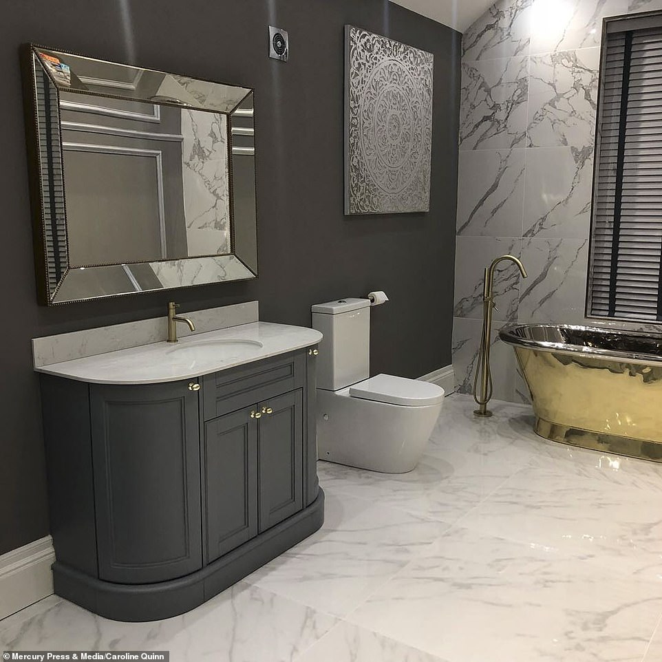 如今的浴室,黑色和金色的搭配尤为抢眼。为了省钱,女主人到处寻找打折货品,这个浴缸是女主人在Ebay上卖的,只花费了£8,000就买到了一个全新的William Holland浴缸,比原价便宜了 £3,000。