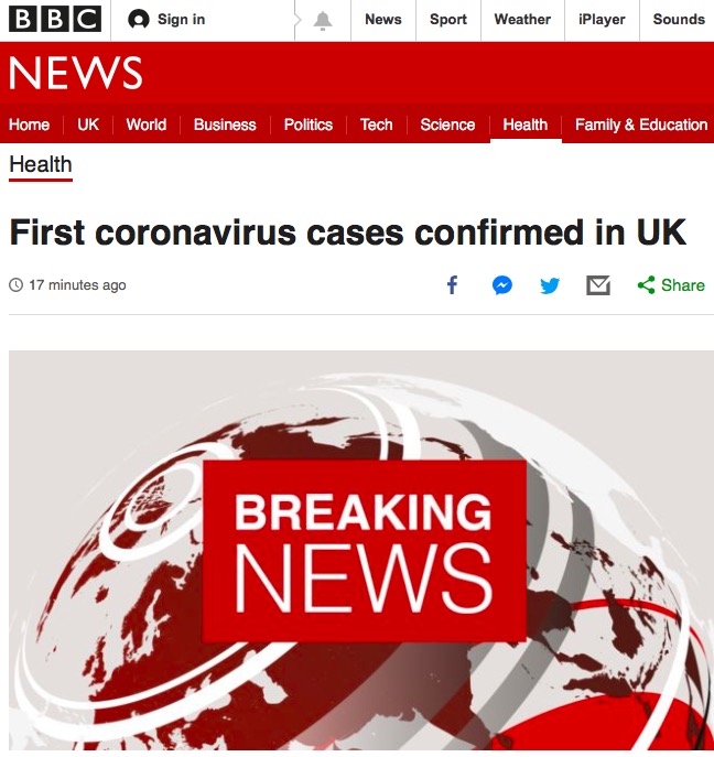 在英国有两个人的新型冠状病毒检测呈阳性!也就是说英国出现了新型冠状病毒的确诊病例!