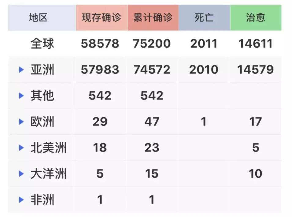 而截至目前,新冠肺炎仍在肆虐,在全球范围内,累计确诊的病例已经达到75,200例,累计死亡人数已经高达2,011人。