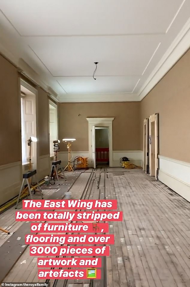 会客厅所在的白金汉宫东翼已经被搬空,超过3,000件艺术品和文物都被妥善保管起来。