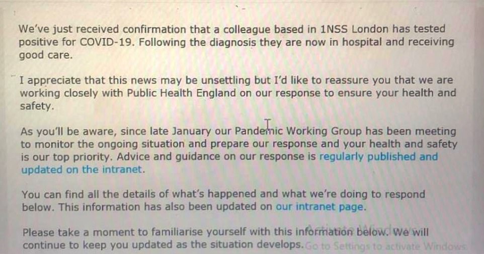 在这名患者确诊后,本周二,德勤首席执行官理查德•休斯顿(Richard Houston)通过电子邮件向该公司英国办事处的员工通报了这一事件。