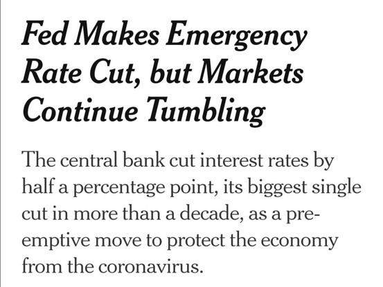 就在昨天晚上,美联储突然宣布,为应对新冠肺炎疫情带来的经济不景气,美联储准备一次性下调联邦基金基准利率50个基点至1%-1.25%的目标区间,下调超额存款准备金利率50个基点至1.1%。