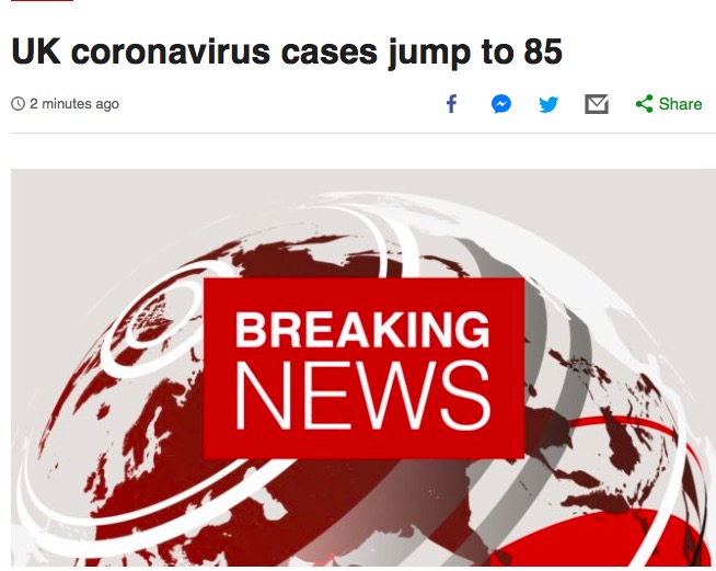 就在刚刚,英国官方宣布,全英昨天至今天新增34例,截至目前,英国已经累计确诊了85例新冠。