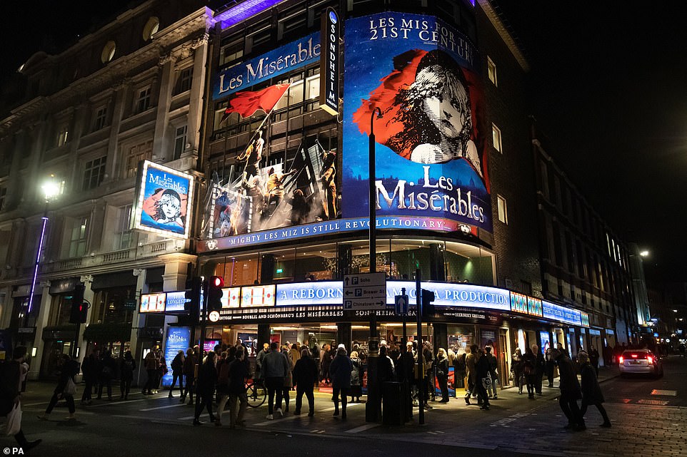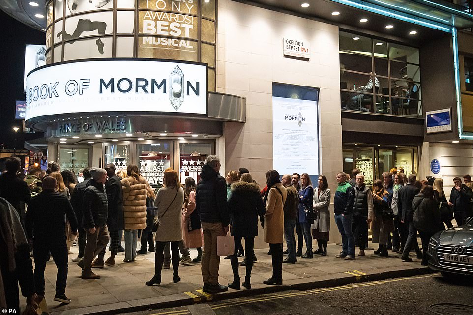 在莱斯特广场附近的Sondheim Theatre剧院外,有记者拍到了大批在排队等待观看《悲惨世界》、《摩门之书》的观众。
