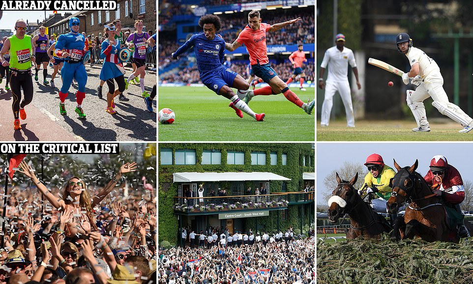 如今,英超联赛已经宣布将暂停至4月初,本周六威尔士对苏格兰的六国橄榄球赛也宣布暂停,英格兰对斯里兰卡的板球巡回赛也正式宣布取消,伦敦马拉松赛也宣布改期……