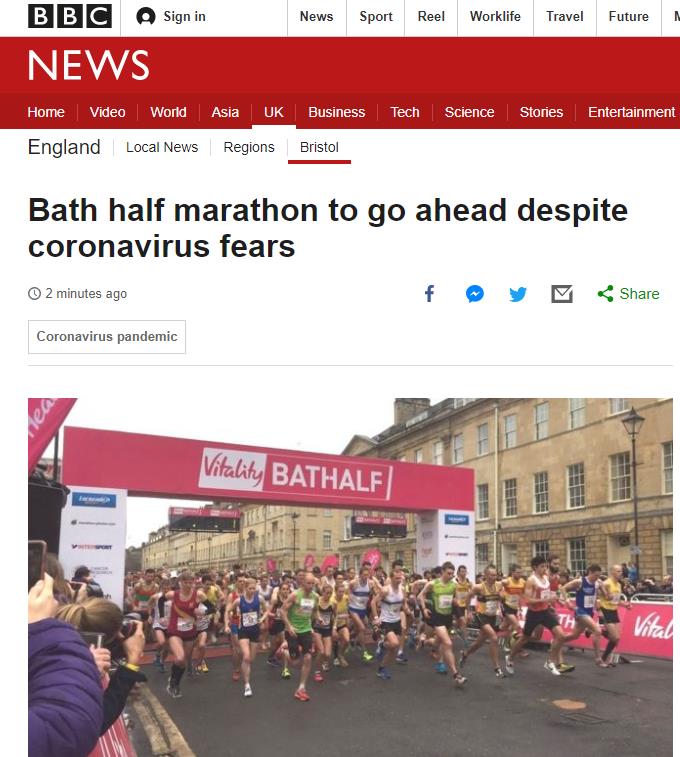 在旅游小城巴斯(Bath),一年一度的半程马拉松赛将于本周日开跑,尽管此前就有议员建议,应该取消计划,而不是继续冒险。