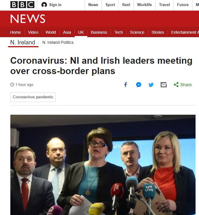 而就在刚刚,北爱和爱尔兰的高官们也召开了一项会议,以商讨如何采取跨境合作措施,防止病毒在爱尔兰岛蔓延。