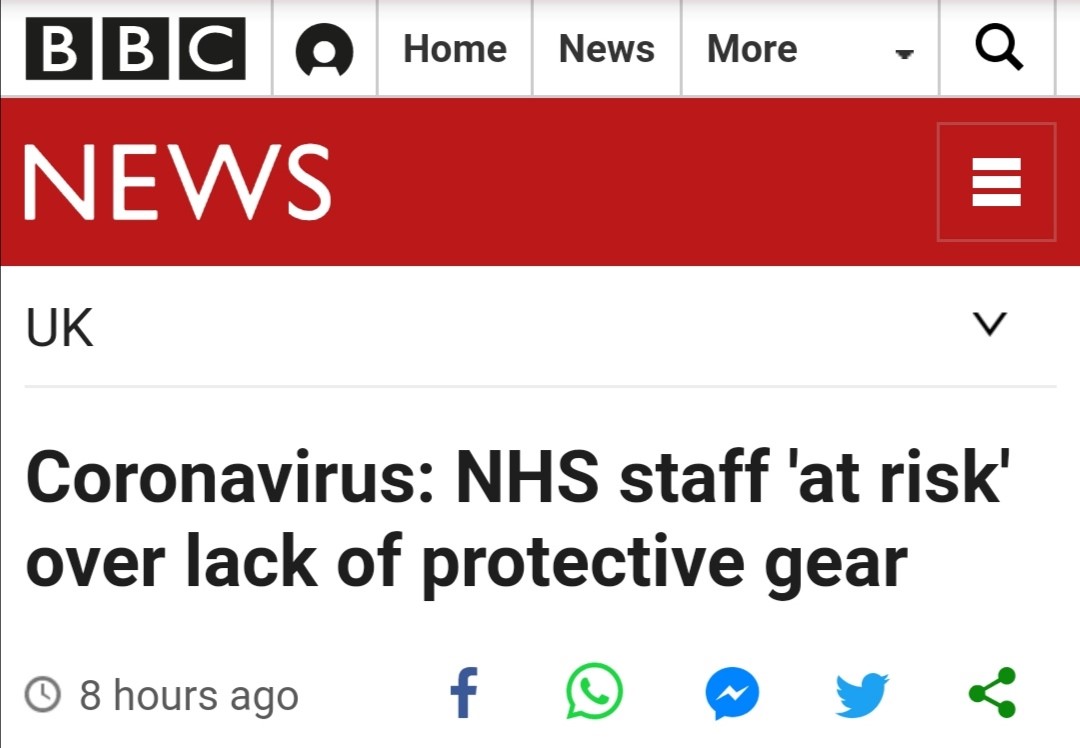 据BBC报道,由于缺乏足够的医疗防护装备,英国NHS的工作人员将面临着很大的感染风险。