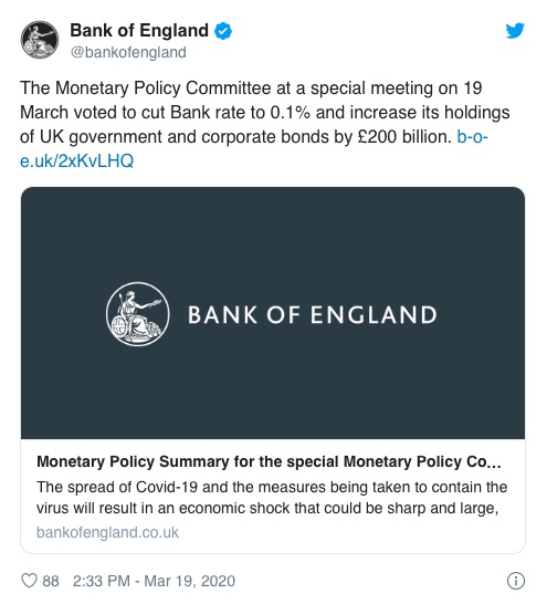 同时,英国央行宣布,进一步降息!从0.25%降至0.1%。