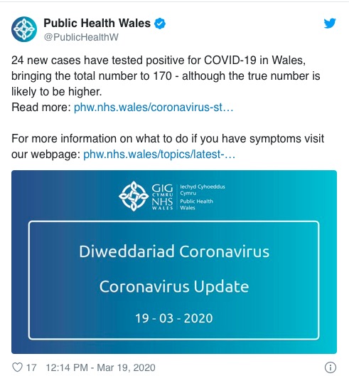 威尔士今日新增24位确诊患者,累计确诊人数达到了170人。