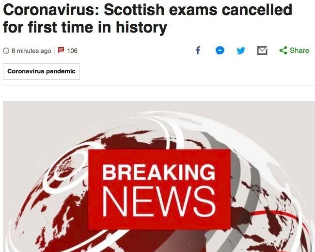 最新消息,今年苏格兰的学生将不会进行考试。