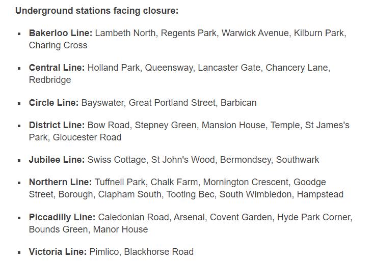 1、伦敦关闭部分地铁站