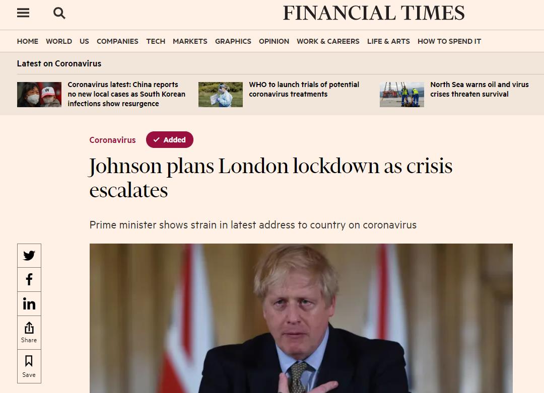 由于这些措施的出台,也引发了人们对于封城的猜测,很多媒体也认为,伦敦首当其冲,会第一时间被封锁。