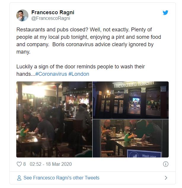 在英国政府提出“社交疏远”措施以来,虽然一些民众选择了支持,但也有很多人没有自觉遵守。