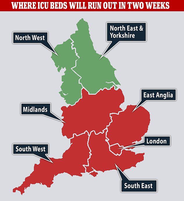 伦敦将是受影响最严重的地区,预计伦敦的重症监护病房床位将在未来四天内用完。