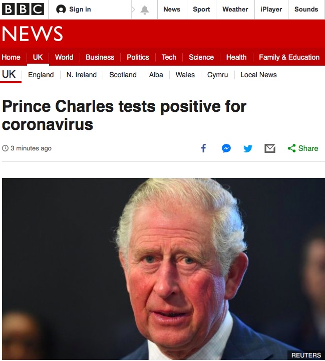 据悉,过去十几天,查尔斯王子至少接触了数百人……所有与查尔斯王子密切接触过的人都开始自行隔离。