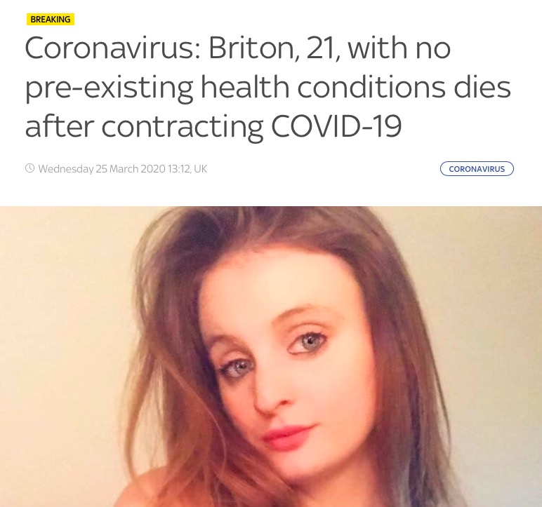 据天空新闻报道,今天,一名年仅21岁,没有任何其他潜在健康问题的新冠确诊患者死亡,引发了人们的广泛关注。